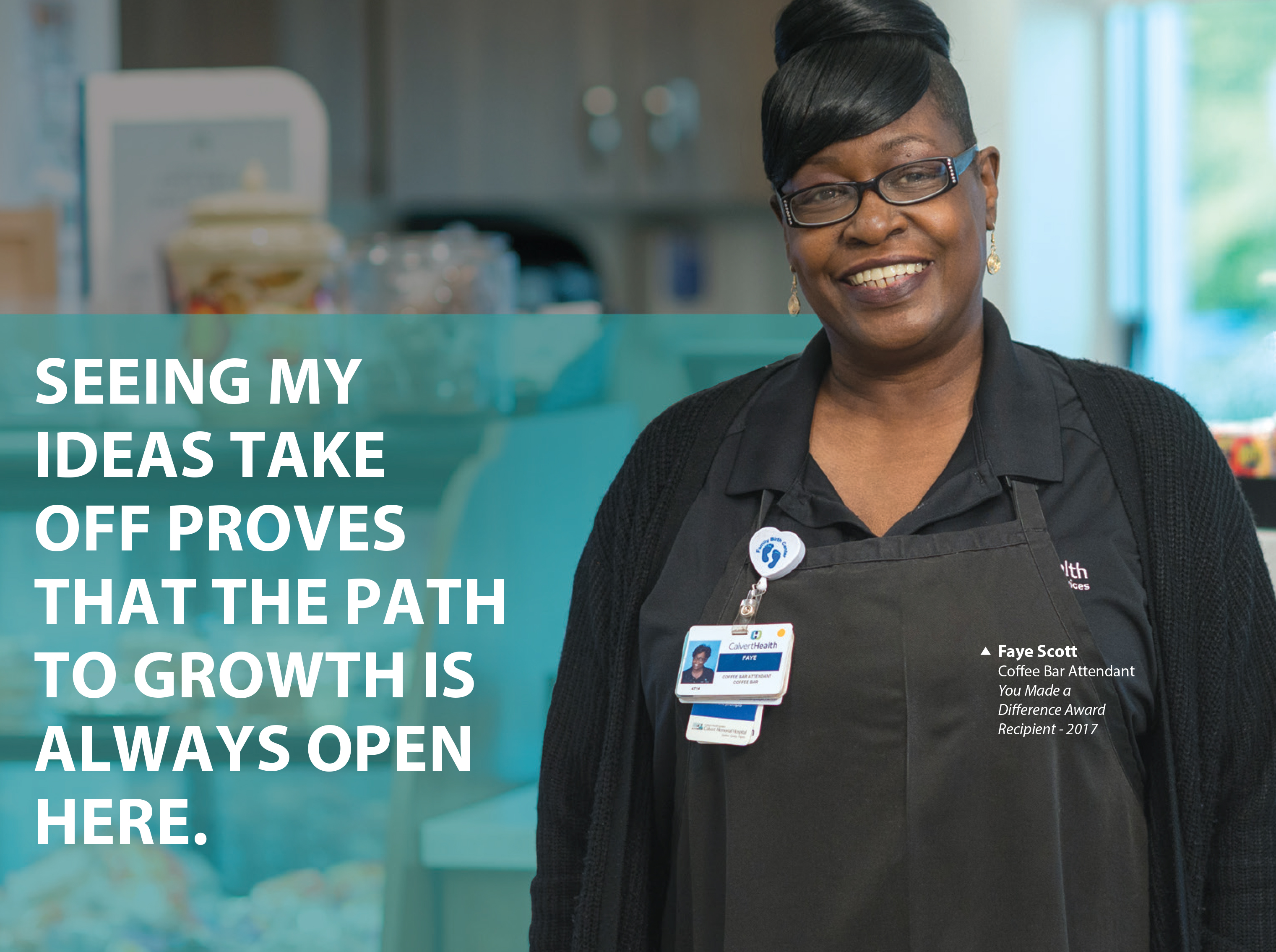 CalvertHealth is more than a health system or a hospital. When you join our team, you make a community of connections that last a lifetime. We offer a centralized location that’s an easy commute and an independent organization built upon independent thinking. You will not get lost in the “system.” We encourage and reward individual and team achievements to make a direct impact on our community.